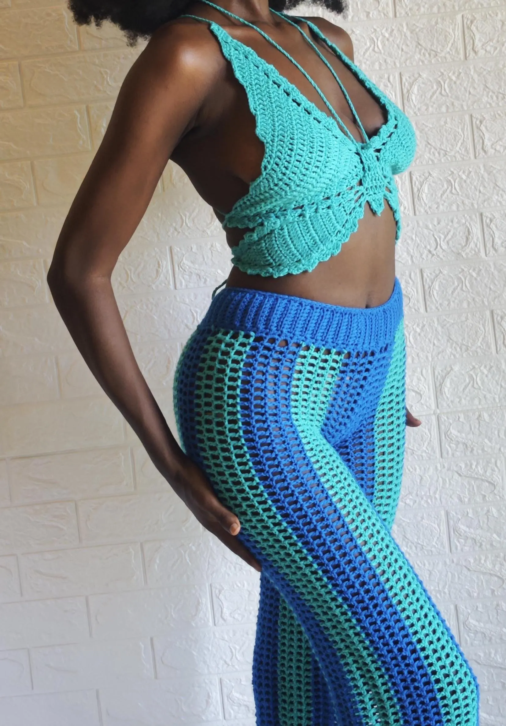 These lightweight, breathable pants are designed with stylish vertical mesh stripes that elongate your legs while keeping you cool. Featuring a thick, solid waistband with a hidden elastic band for comfort and a snug fit, they’re the perfect match for our Butterfly Crochet Top – making it your next go-to beach outfit combo!