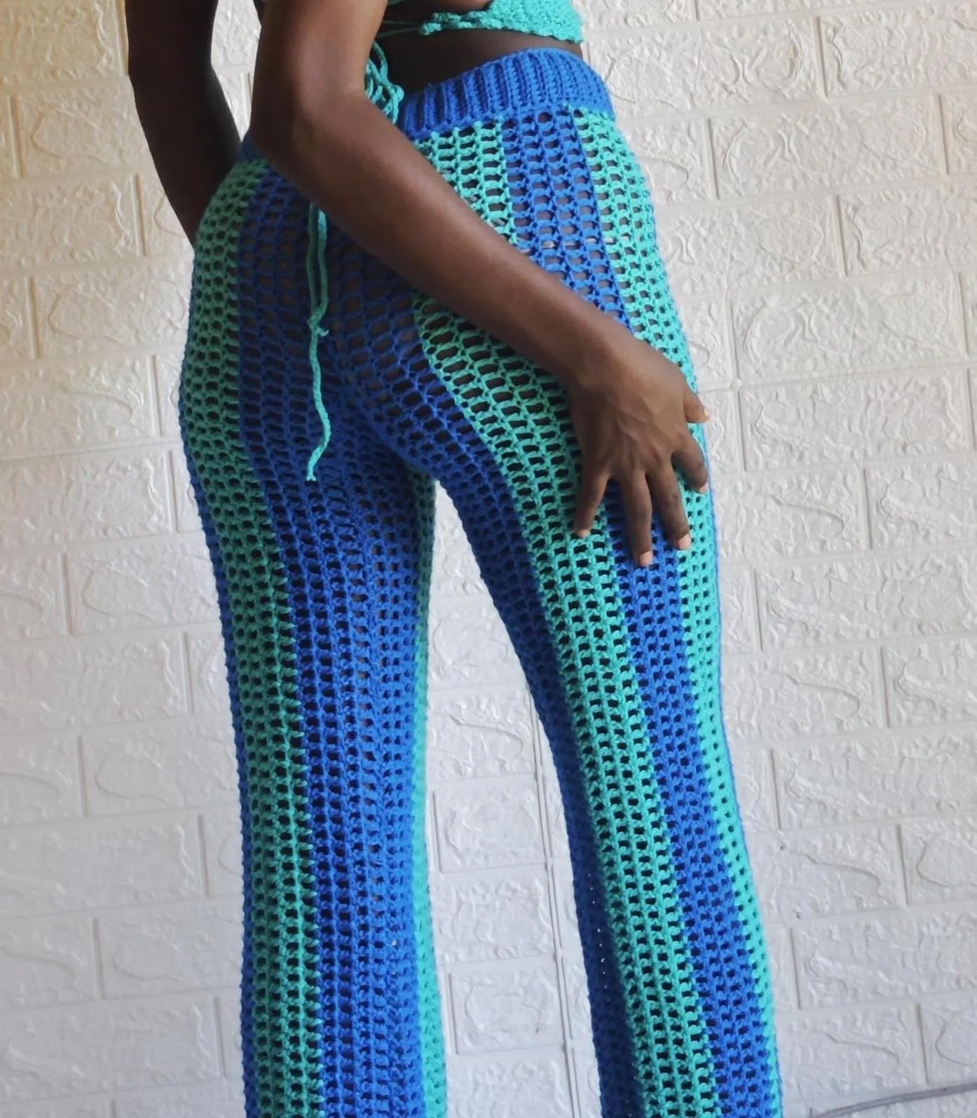 Introducing the Crochet Striped Mesh Pants by ShylerCrochets – the ultimate summer beach cover-up! 🌴☀️