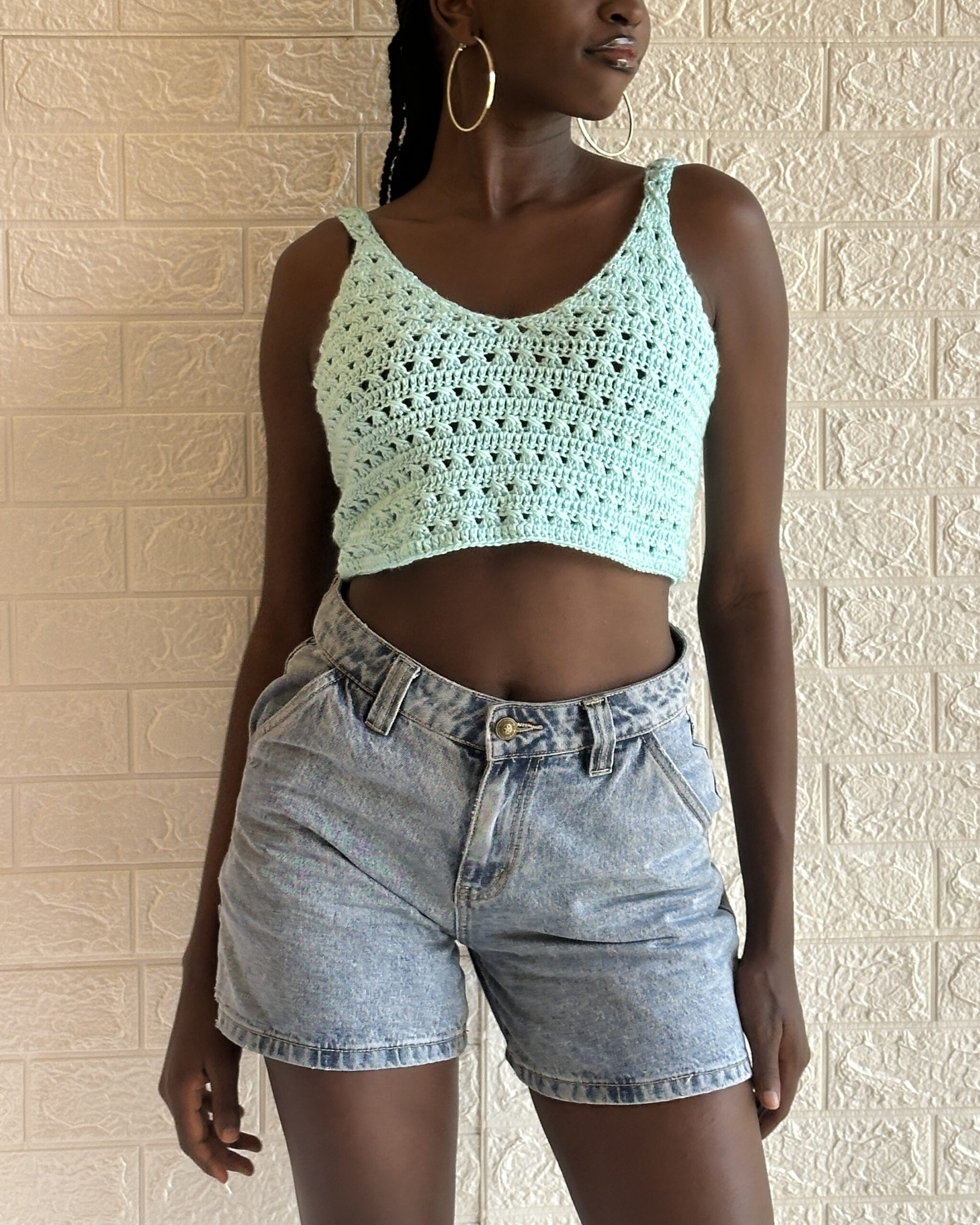 Whether you’re a beginner or an experienced crocheter, this project is simple, relaxing, and totally customizable. You can pair this top with your favorite shorts, trousers, or skirts for the cutest summer look.