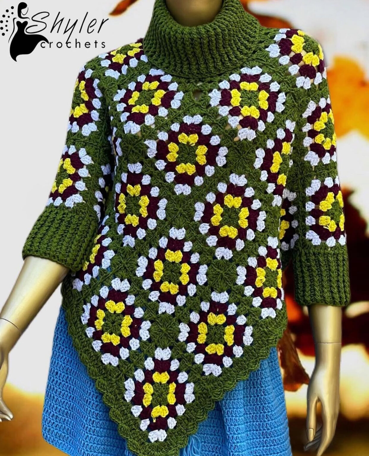 Introducing the Granny Square Crochet Poncho by ShylerCrochets — a cozy, colorful, and stylish layering piece that blends timeless crochet charm with modern comfort. Made up of multiple vibrant granny squares, this poncho showcases the beauty of color and texture in true boho fashion.
