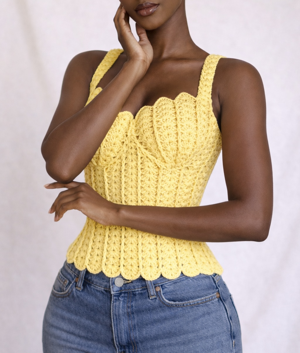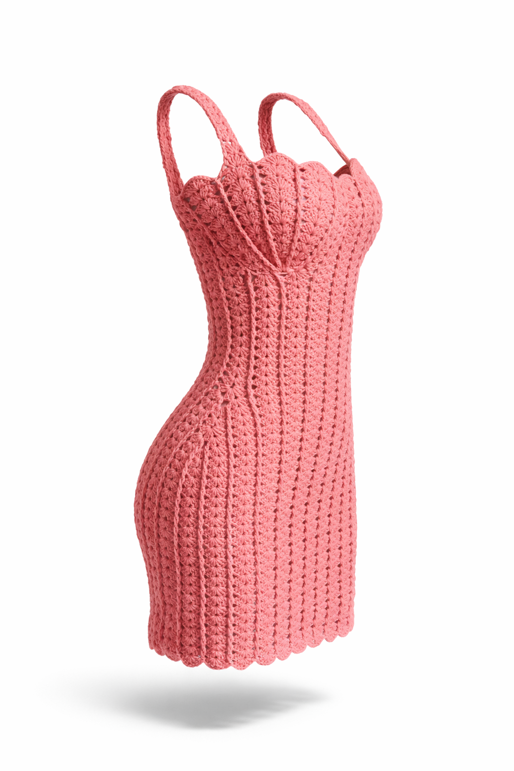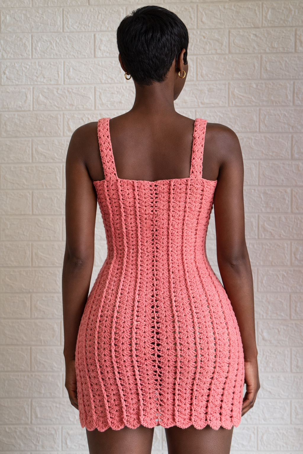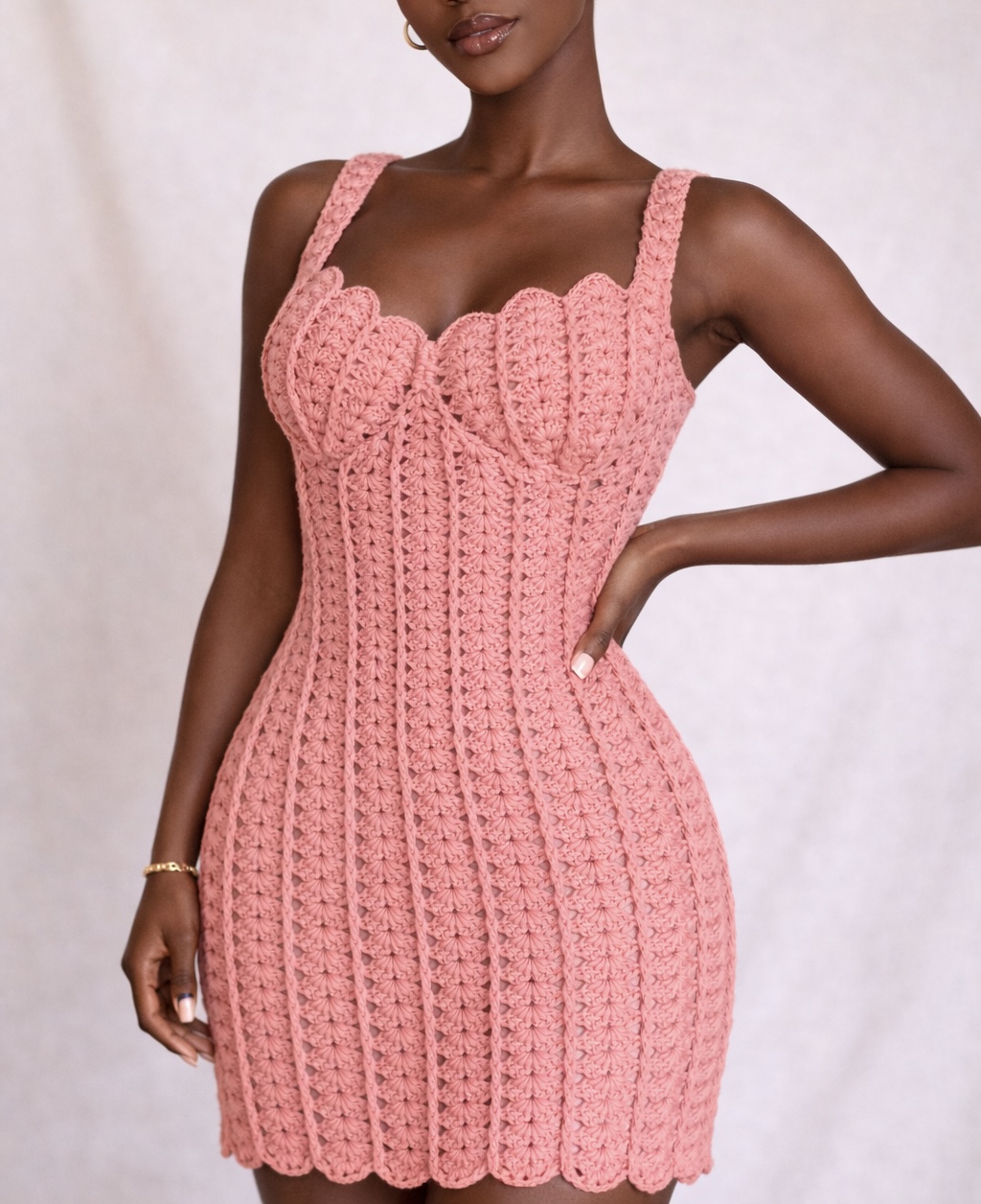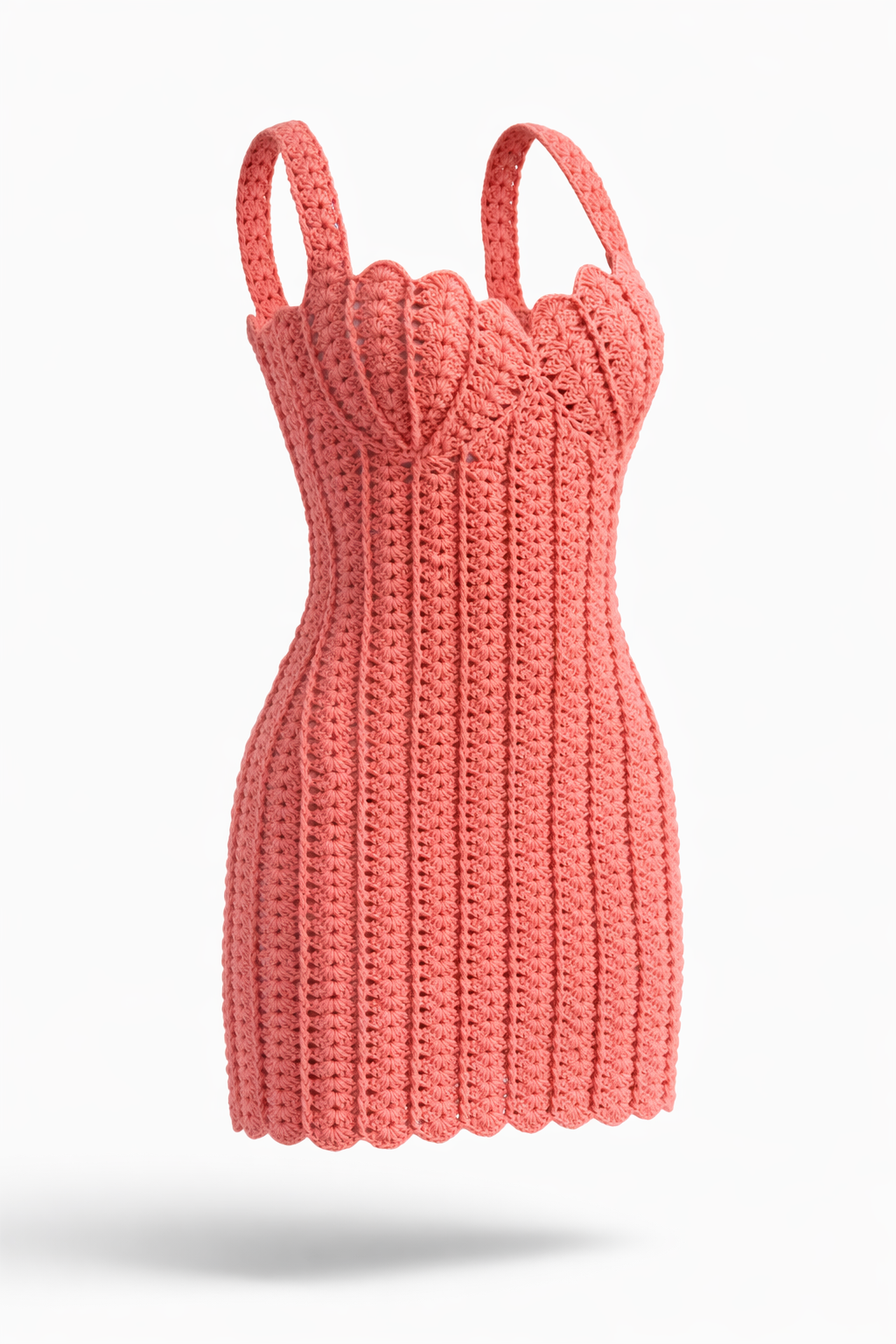 This Shell Stitch Crochet Bodycon Dress / Top is a made-to-measure design featuring shell stitch bra cups, full back coverage, and sturdy straps for a secure and flattering fit. Start it as a crochet top or continue shaping to transform it into a mini, midi, or maxi bodycon dress — all from the same pattern.