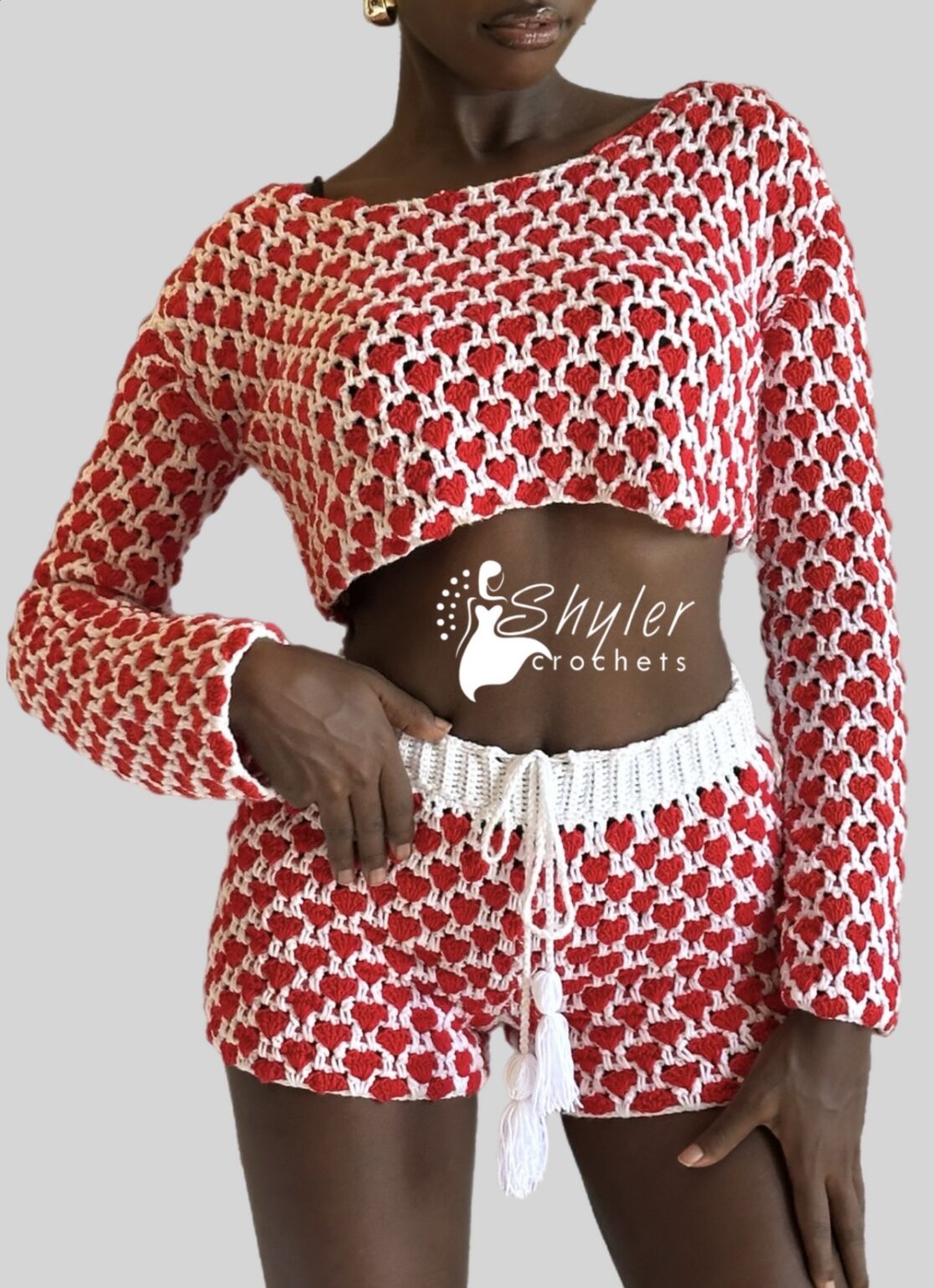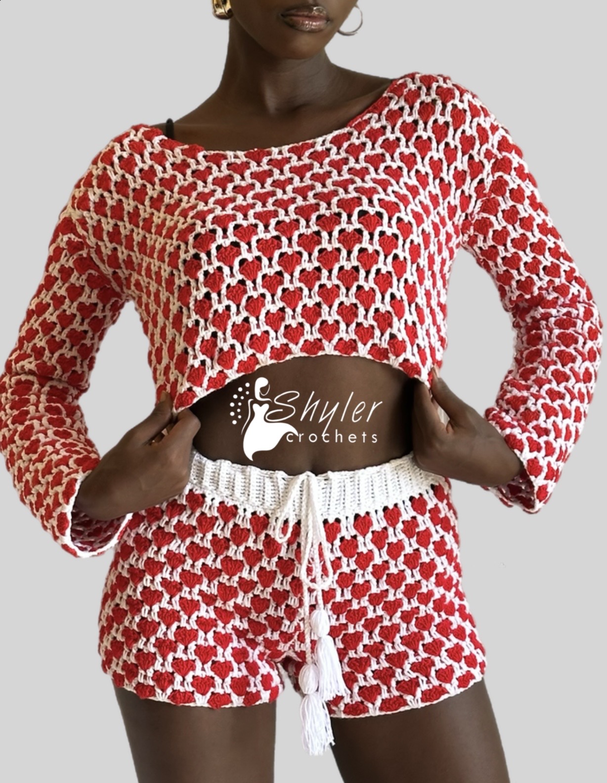 Valentine’s Hearts Crochet Cropped Sweater Pattern